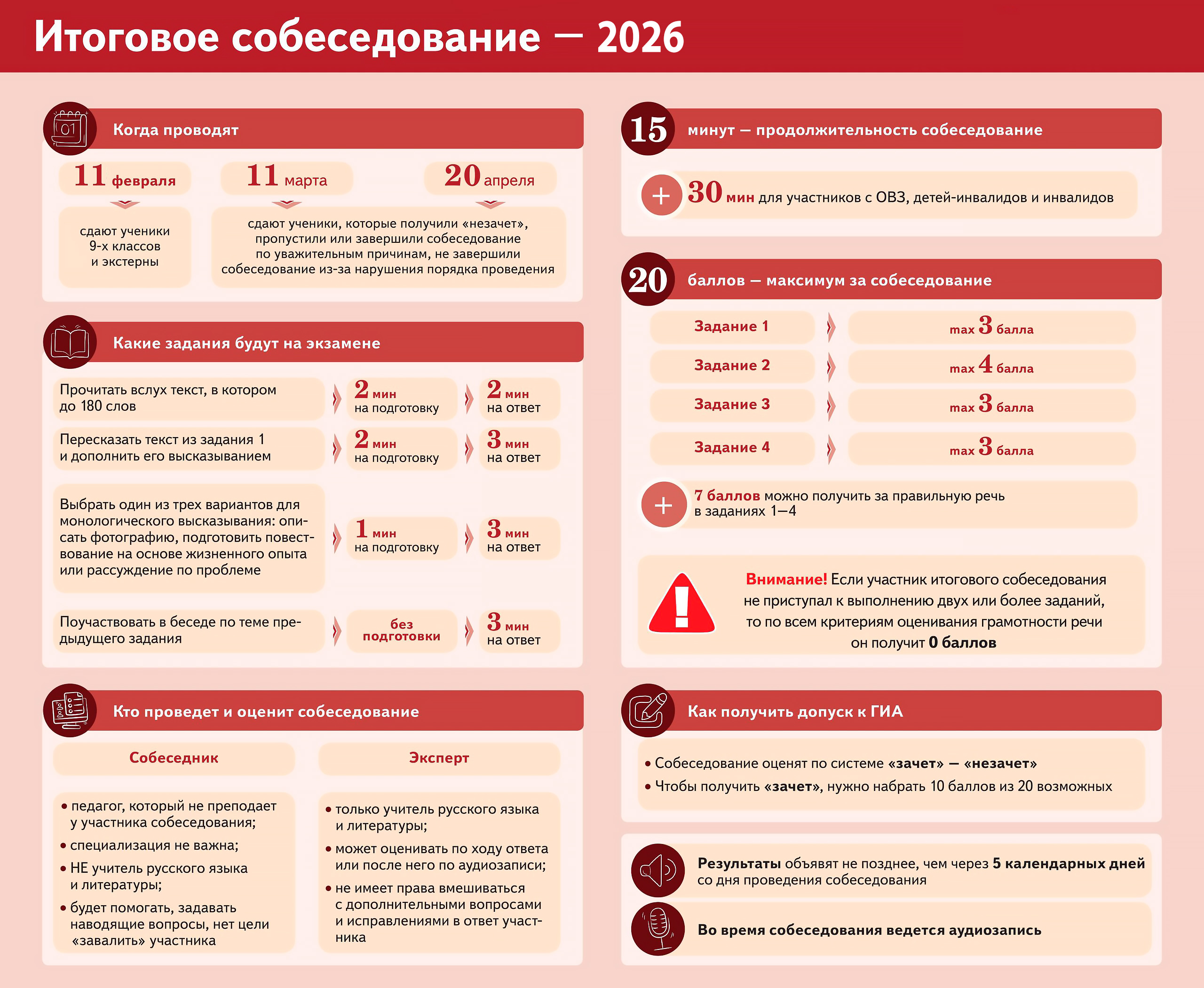 Расписание итогового собеседования по русскому языку в 2025–2026 учебном году
