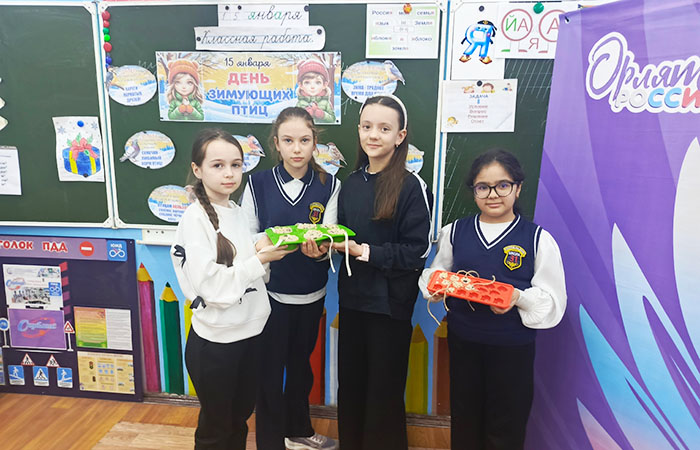 Ученики 4 класса нашей школы организовали День зимующих птиц России